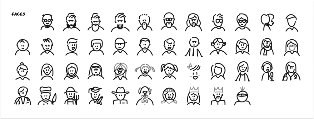 FacesThe Doodle Library45 faces doodles Customizable open path art SVG files 400x400px PNG files $33usdRoyalty FreeCreative Commons Attribution 4.0 International13usdI want this!Size618 KBAdd to wishlist New wishlistShare on XShare on Facebook Copy linkCopy product URL