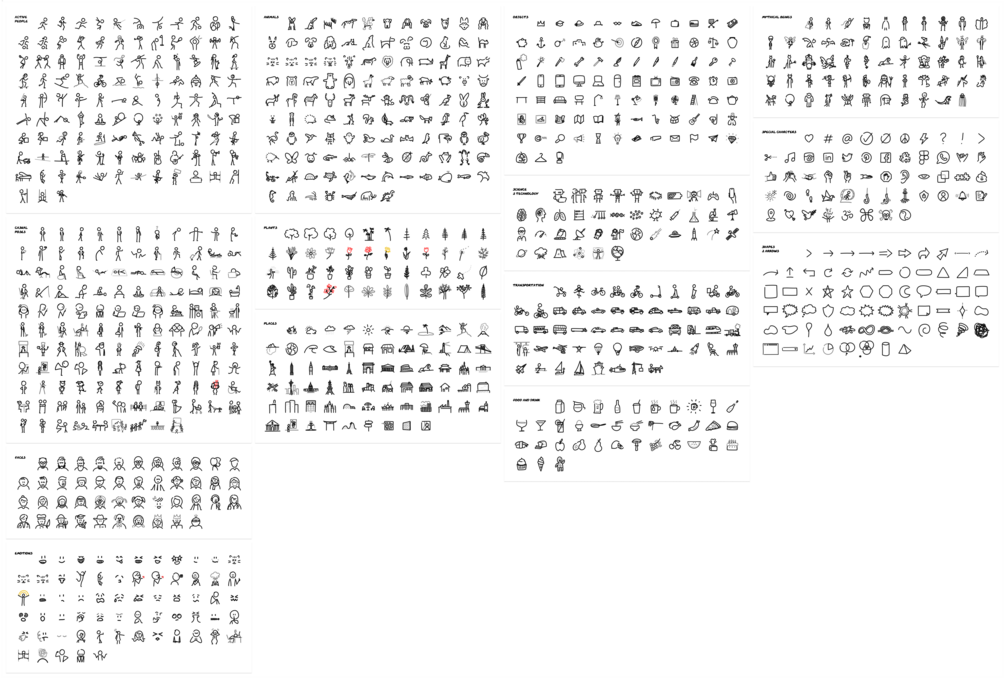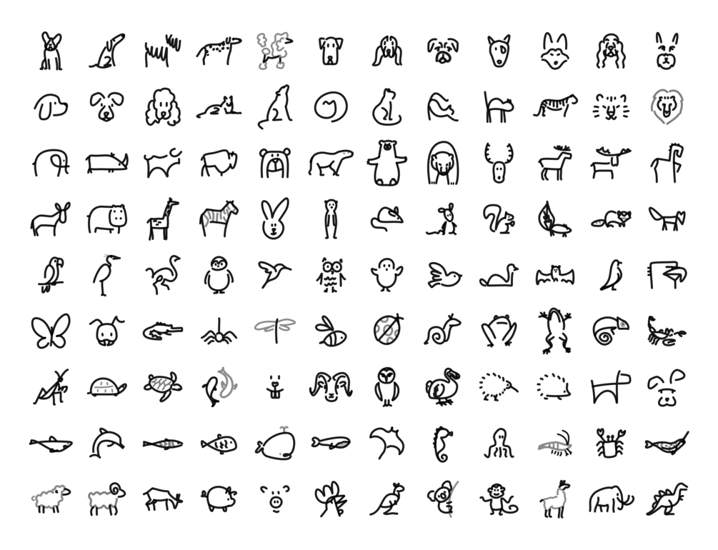 Open path illustration in SVG and PNG formats designed to increase comprehension, retention, and delight audiences with simple animations, stick figures, faces, expressions, places, animals, objects, transportation, special characters, food, mythical beings and simple shapes