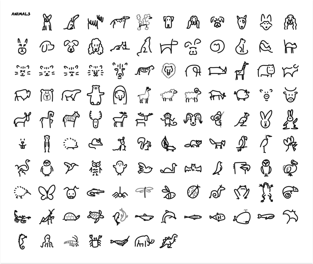 114 doodles of all creatures great and small, wild animals, farm animals, pets and more
